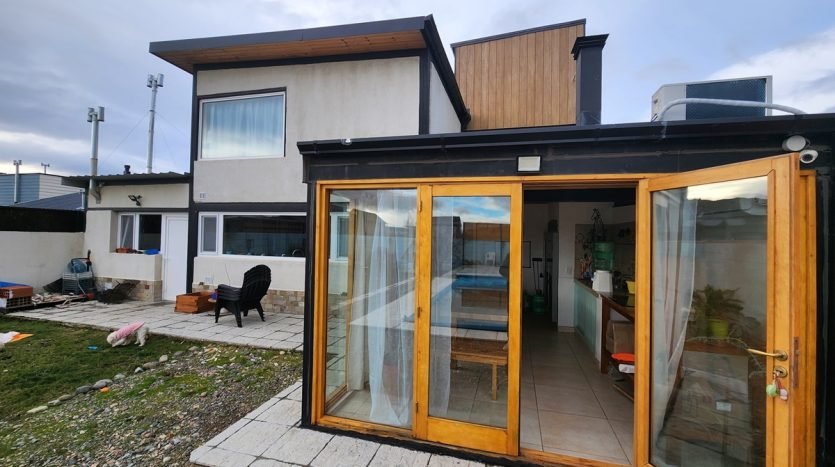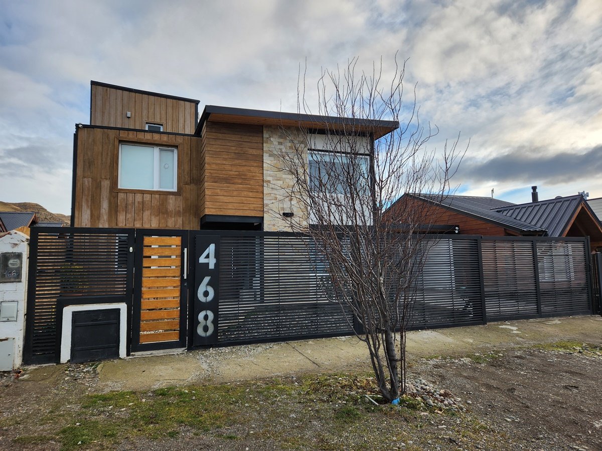 Vivienda en Esquel. Construcción nueva, 4 dormitorios, 2 baños, pileta climatizada, propiedad cerrada con paredones y reja al frente. Vidrios dobles en planta baja blindex. Parquización